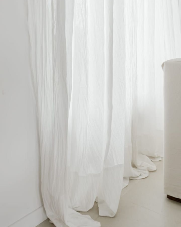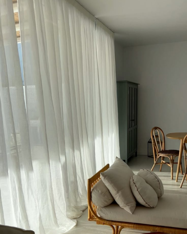 Confeccionamos cortinas a medida en gasa de algodón, con opción de tejido abierto o cerrado, en tonos off white o natural.